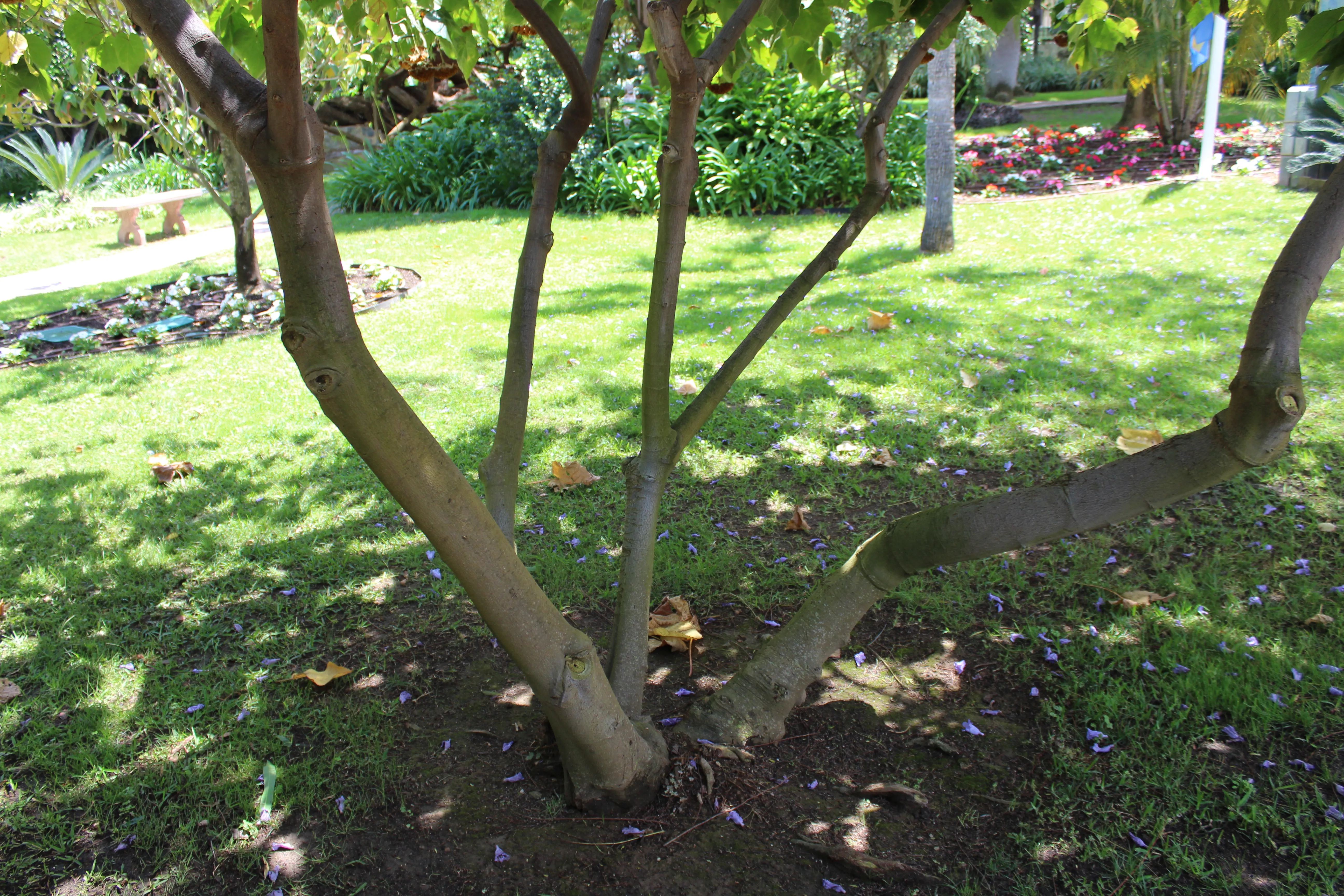Árbol perenne, puede ser caduco en funcion del clima, alcanza 7m de altura. Porte redondedo. Tronco corto y liso, de color gris parduzco. Hojas grandes y alternas, trilobadas normalmente, de 20-30cm de longitud, con tacto tomentoso. Las inflorescencias son cimas umbreliformes colgantes largamente pedunculadas, con numeross flores de color rosa. Frutos en cápsula de 1cm de diámetro